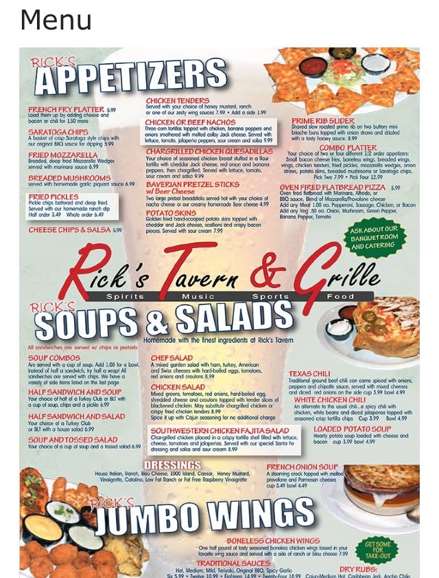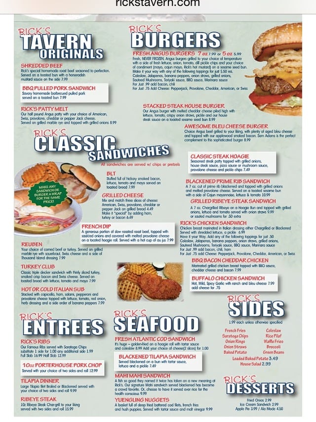 Introducing Rick's Tavern & Grille, a bustling music venue and sports bar in Fairfield, OH. This American-style restaurant offers a plethora of amenities, including live music, karaoke, and a pool table. The casual, laid-back atmosphere is perfect for groups, families, and solo diners alike. With options for outdoor seating, private dining, and even drive-thru service, Rick's truly has something for everyone. Enjoy a full bar, happy hour specials, and a diverse menu that is sure to please all taste buds. The best nights to visit are Tuesday, Thursday, and Friday, so mark your calendars. With convenient features like takeout, delivery, and ample parking, Rick's Tavern & Grille is a must-visit spot for those looking for a fun night out with delicious food and entertainment.